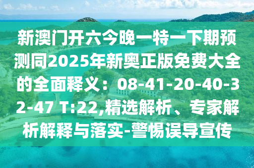 新澳門開六今晚一特一下期預(yù)測同2025年新奧正版免費(fèi)大全的全面釋義:08-41-20-40-32-47 T:22,精選解析、專家解析解釋與落實(shí)-警惕誤導(dǎo)宣傳