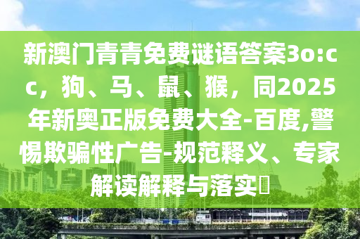 新澳門青青免費謎語答案3o:cc,狗、馬、鼠、猴,同2025年新奧正版免費大全-百度,警惕欺騙性廣告-規(guī)范釋義、專家解讀解釋與落實?