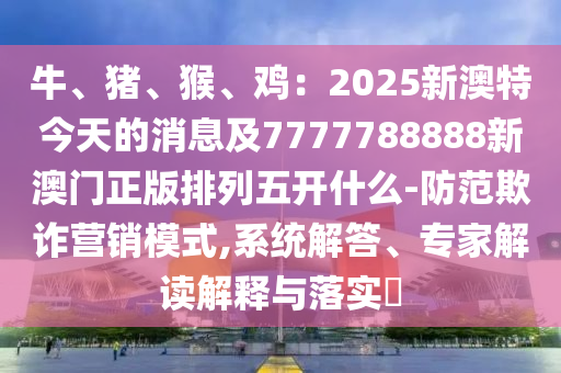 關(guān)于關(guān)鍵詞“牛、豬、猴、雞、2025新澳特今天的消息及7777788888新澳門正版排列五開什么”的系統(tǒng)解答、專家解讀解釋與落實(shí),以及防范欺詐營(yíng)銷模式的警示